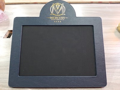 + Simili sewing menu cover with high-quality imitation leather, gold-plated logo