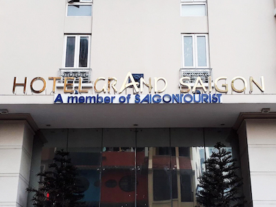 Building signs and facades are made of polished stainless steel with LED lettering lights